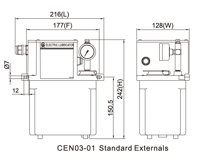 · Станции смазки CEN03 и CEVB управляются ЧПУ, станции CEN04 и CENB управляются встроенным таймером. Все модели оснащены датчиком уровня масла и датчиком давления, настроенным на 8кг/см2.