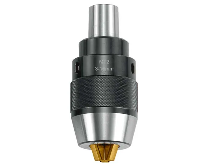 Патрон сверлильный усиленный специализированный быстрозажимной 16S-MT3 с кулачками из высокотехнологичного титана предназначен для применения на фрезерных, сверлильных и токарных станках. Диапазон зажимаемого инструмента 0.3~16 мм, хвостовик с конусом морзе и точностью патрона 0,05 мм.