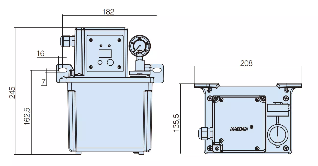 Индикаторы показывают состояние смазки и работу насоса. Сброс системы кнопкой для принудительного смазывания или тревоги.