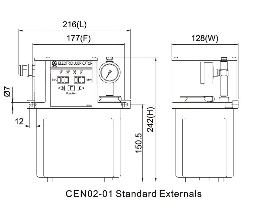 6. Его функция аналогична типу CEN01.  Разница заключается в том, что тип CEN01 не имеет таймера (он также может управляться программным логическим контроллером), а тип CEN02 управляется таймером.  Типы СЕНОЗ и CEN04 - это электрические смазочные устройства для сброса давления.