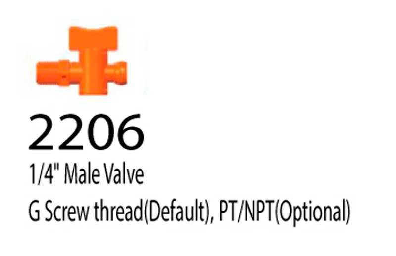 Вентиль JFLO с наружной винтовой резьбой (папа) для трубок СОЖ 1/4". Для регулировки или перекрытия потока СОЖ/воздуха в рабочей зоне станка.