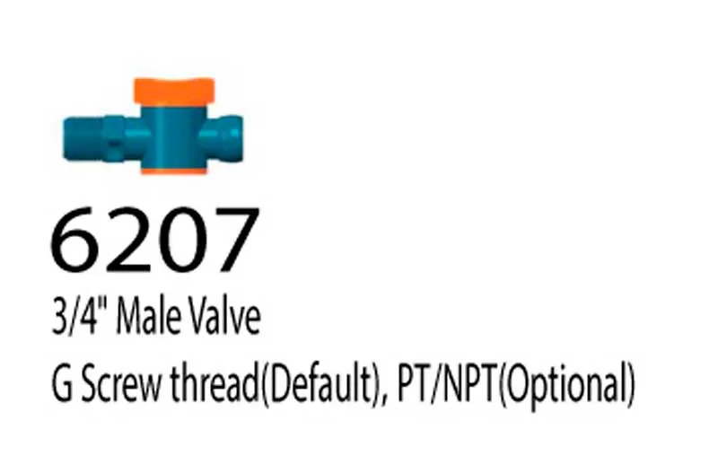 Вентиль с наружной винтовой резьбой (папа) для трубок СОЖ 3/4". Для регулировки или перекрытия потока СОЖ/воздуха в рабочей зоне станка.