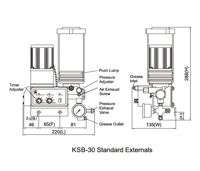 2. Он делится на объем бака для смазки KSB-30 (600 куб. См), KSB-35 (1000 куб. См), KSB-40 (800 куб. См) и KSB-50 (2000 куб. См).