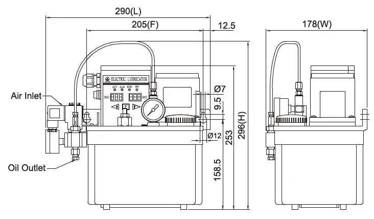 Станция смазки масляный туман CEN22 выполнена из резины. Ёмкость системы смазки можно выбрать: 3л или 4л.