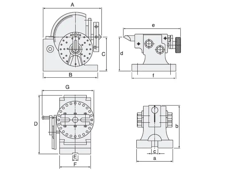 Полууниверсальная делительная головка - это упрощенный тип универсальной делительной головки, может использоваться для непосредственной и опосредованной угловой индексации. Никаких вспомогательных приспособлений для работы с дифференциальной угловой индексацией не включено, но вся конструкция делительной головки и задней бабки идентична конструкции головки универсального типа. Блок имеет диск непосредственного деления с 24 отверстиями, позволяющий производить непосредственное деление на 2, 3, 4, 6, 8, 12 и 24 делений. Три других делительных диска предлагаются как стандартные для облегчения опосредованной угловой индексации всех делений от 2 до 50, а также наиболее применяемых делений до 380.