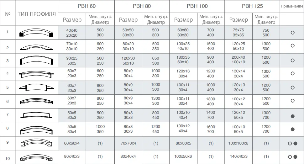 PBH 60 специально разработан для прокатки профилей с высокой устойчивостью к изгибу. Именно по этой причине конструкции имеют большие размеры и изготовлены с использованием листов большой толщины и сертифицированной, качественной стали.