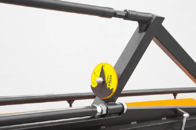 Угломер станка в диапазоне 0° до 135°, в стандартной комплектации. Точное позиционирование угла происходит при заправленном листе в листогиб и поворотом гибочной балки.