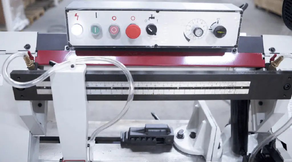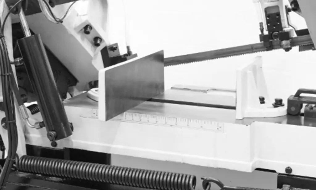 Станок оснащён твёрдосплавными пластинами и подшипниками для точного позиционирования ленточнопильного полотна