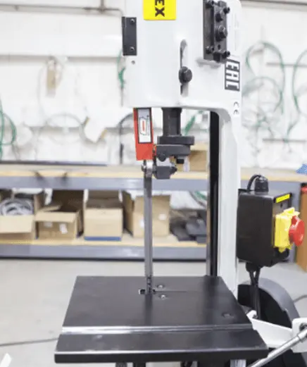 Пильную раму возможно установить в вертикальном положении - для резки небольших изделий из дерева, пластмассы и других заготовок из мягких материалов (для которых не требуется фиксация в тисках во время пиления) при этом станок обязательно должен крепиться к полу