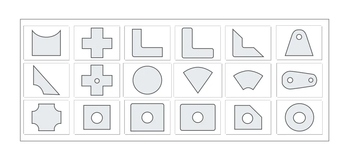 Функция автоматической раскладки просматривает несколько заготовок, которые должны быть вырезаны из листа, а затем располагает их на листе наиболее эффективным способом. Более низкие материальные затраты.