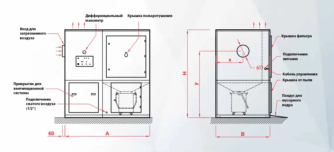 Низкий уровень шума благодаря усовершенствованной конструкции глушителя <70 дБ (A) Все соединительные трубы между плазменной машиной и фильтром оцинкованы. Оцинкованные трубы минимизируют потери.